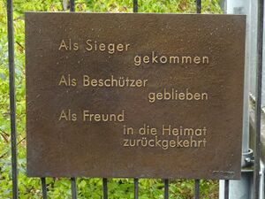 Le 18 mars 2024, lors d’une cérémonie en hommage à Émile Béthouart, une plaque a été inaugurée sur la passerelle en présence de sa petite-fille, Valérie Béthouart Dolique[6], du maire d’Innsbruck Georg Willi[7], de la vice-présidente du parlement tyrolien Sophia Kircher, de l’ancien gouverneur du Tyrol Herwig van Staa, de la consule honoraire de France à Innsbruck Andrea Pegger[8] et de son mari Franz Pegger[9], président de l’Institut franco-tyrolien d’Innsbruck, de l’ancien consul honoraire Ivo Greiter, du directeur de l’école HAK Jochen Hois et du proviseur du lycée Jean Dupuy de Tarbes, Cyrille Crouade, deux établissements scolaires partenaires[10], ainsi que des professeurs de romanistique de l’Université d’Innsbruck. De l’autre côté de la passerelle, en écho à la plaque posée en 2003, est installée une nouvelle plaque, portant la même inscription traduite en français « Venu en Vainqueur/ Resté en Protecteur/ Reparti en Ami dans sa Patrie ». La plaque en français a été réalisée par le professeur Christophe Zeni du lycée Jean Dupuy de Tarbes, sur l’initiative de la professeure de français de l’école HAK, Barbara Ditterich[11].
